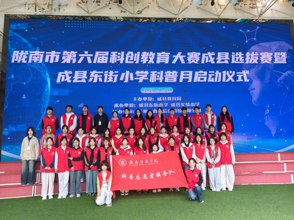 9月29日,陇南市第六届科创教育大赛成县选拔赛开幕式暨成县东街小学科普月活动启动仪式隆重启幕。我院院长叶文斌、实训中心主任赵淑玲、科学教育专业教研室主任胡文斌应邀出席开幕式,并对赛事组织及科普活动进行现场指导。我院60名学生志愿者也参加了此次活动,与师生代表共同见证县域青少年科技教育实践的蓬勃发展。