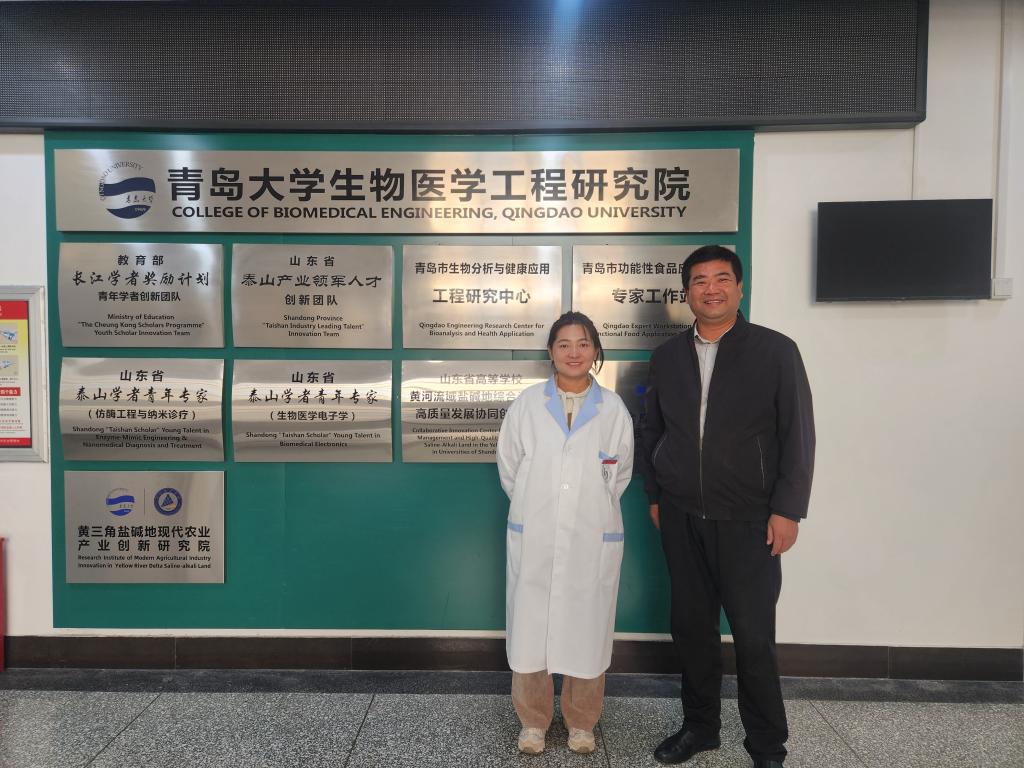 近日,陇南师范学院农林技术学院院长叶文斌教授借赴青岛跟岗学习之机,专程看望了在青岛大学攻读博士学位的我院青年教师陈娜,并实地考察了青岛大学生物医学工程研究院。交流过程中,叶文斌院长关切询问了陈娜在青岛大学的学习进展与生活状况,对其博士论文选题及在导师指导下所开展的深入系统研究表示充分肯定。在陈娜的陪同下,叶文斌参观了其所在科研平台的实验环境与设施配置,并对研究院先进的仪器设备、严谨的管理机制表示赞赏。