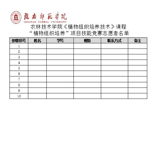 请农林技术学院具有一定植物组培技能的学生积极参加(25级除外);参赛学生和志愿者报名请联系24级农业生物技术1班 团支书何少杰。方案和报名表见附件!