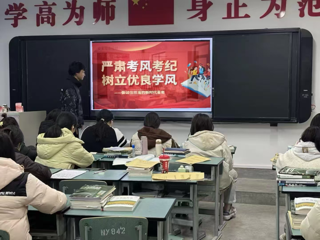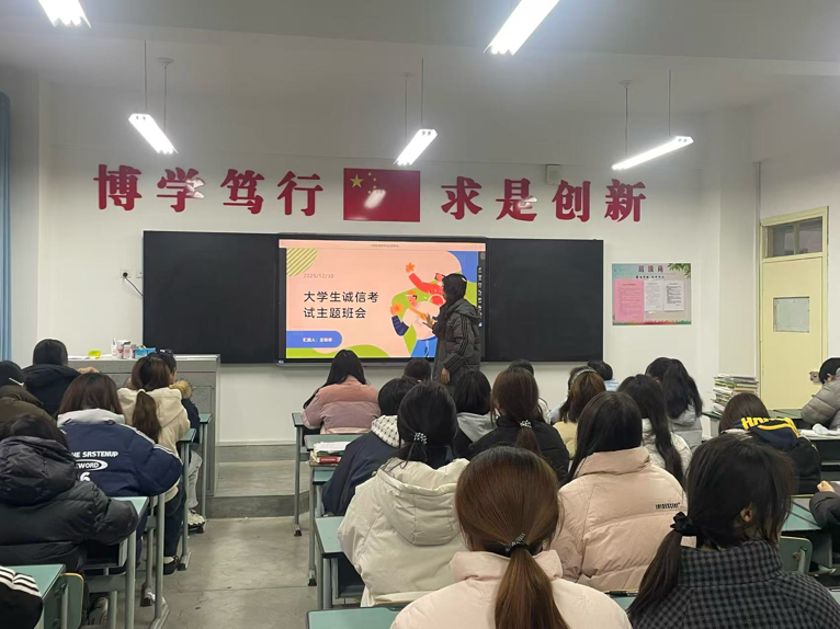 班会伊始,班长带领全体同学认真学习大学生诚信考试相关要求,着重强调考试作弊行为的严重后果。班长号召大家以诚信为本,端正备考态度,严守考纪校规,以扎实的学识和良好的心态迎接期末考试。