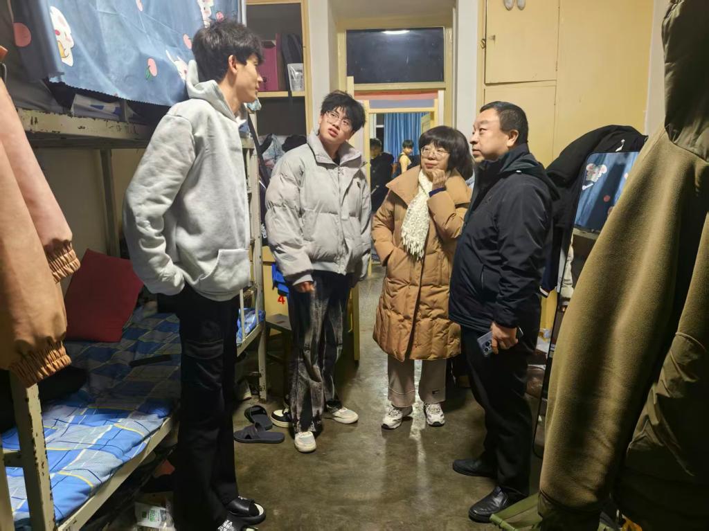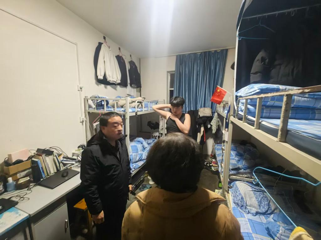 走访中,何九军副院长与乔晓丽老师仔细查看宿舍卫生环境与设施配备情况,与同学们亲切交流,详细询问大家的返校情况、假期生活趣事以及学习生活中遇到的难题。两位老师叮嘱同学们尽快调整作息状态,以饱满的精神投入到复习中;同时强调要时刻绷紧安全弦,注意宿舍用电安全,共同营造安全、整洁、和谐的住宿氛围。