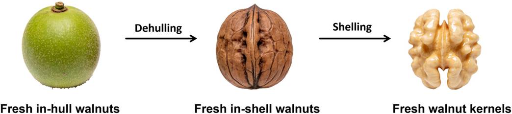 FIGURE 1Status of fresh walnuts in three forms.